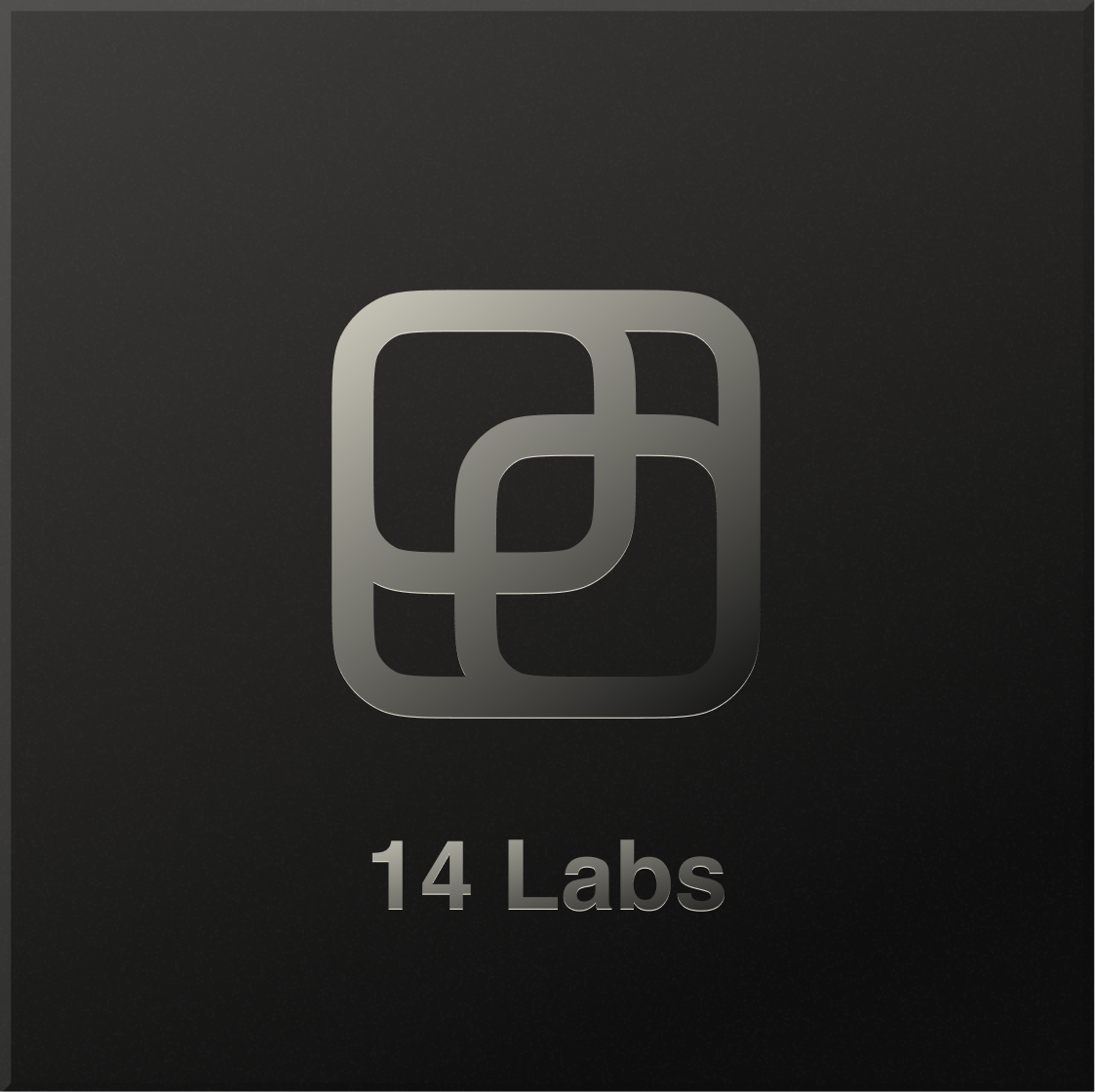 14 is the atomic number for silicon. The intention behind the logo was to create a symbol that mimics a chip, has some nice right angles, is balanced, and unique. For the chip packaging, we're using apple's M1 as a template which was found on figma. I intensified the gradient and added a gold-ish hue to make it look a bit more metallic but not cold. I added a drop shadow to the logo and the chip to give it that extruded look.